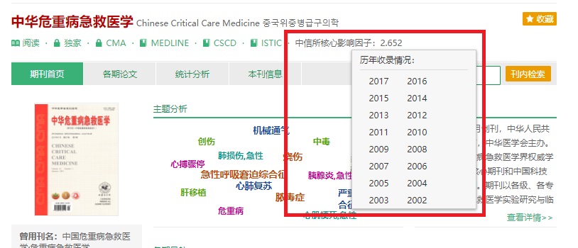 3.10 ISTIC核心期刊影响因子,收录源收录年份展示